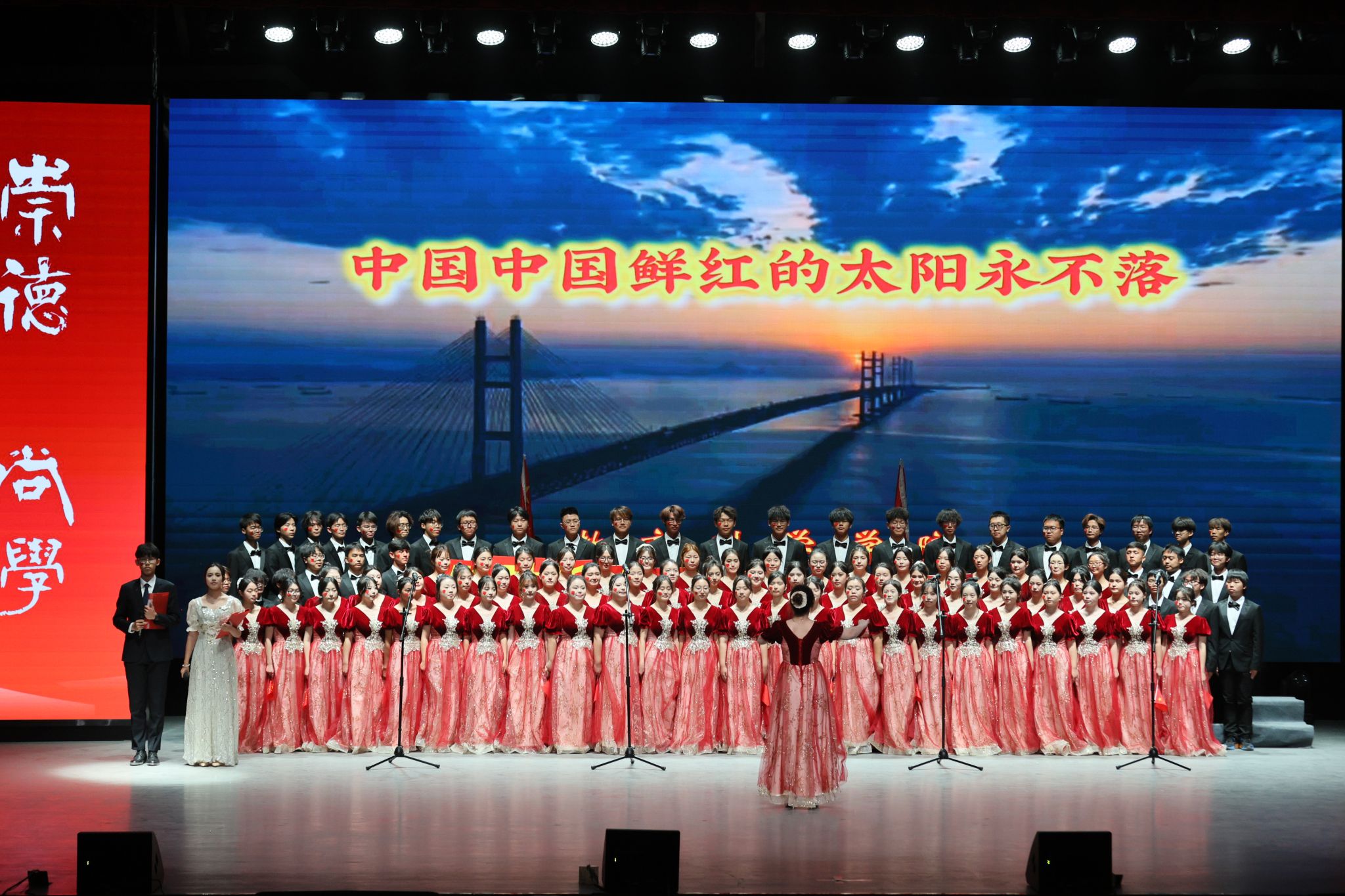 比赛当日,舞台之上,合唱团成员身着整齐服装,身姿挺拔如和田的白杨。当《中国,中国,鲜红的太阳永不落》的前奏响起,全场瞬间静谧。歌声初起时,如春风拂面,温柔而坚定,诉说着对祖国大地的深情眷恋;旋律递进间,声浪渐高,如昆仑雪崩,激昂而磅礴,传递出新时代青年的壮志豪情。他们用饱满的情感诠释着歌词中的赤诚,用默契的配合展现着团队的力量,每一个音符都饱含对祖国的热爱,每一段旋律都彰显着青春的担当。