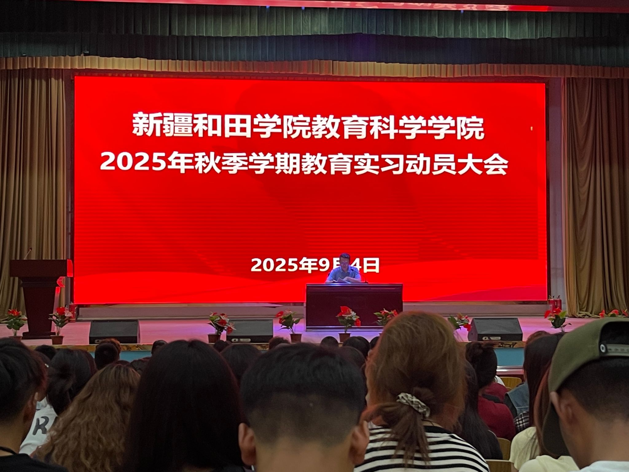 在南校区,大会伊始,教育科学学院党总副支书记程爽转达了《新疆和田学院2025年秋季学期实习方案》,并发表了热情洋溢的动员讲话,深刻阐述了专业实习的重要意义,同时详细介绍了考核标准和内容、安全须知、师德师风的遵守,并反复叮嘱同学们要时刻与辅导员、实习指导老师保持畅通联系,确保实习工作安全、有序、高效完成。