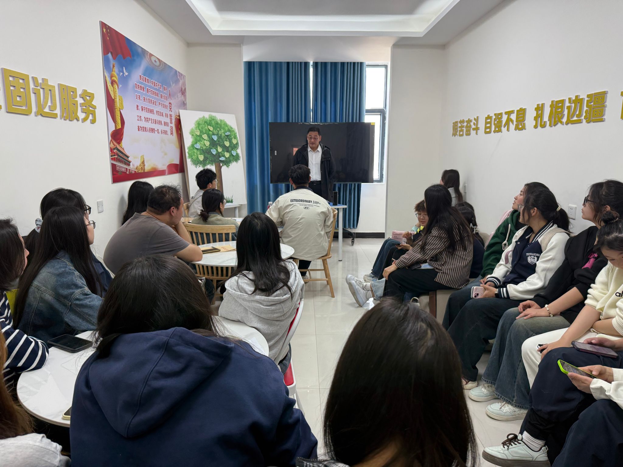 为深化“一站式”学生社区综合育人实效,引导学子涵养精神品格、破解学业困境,3月25日,新疆和田学院“新和·一站式”学生社区育人工作坊在昆仑路校区10号宿舍楼党团活动室开讲。本次活动以“学胡杨坚韧之志,解学业前行之困”为主题,由教育科学学院副院长丁永为教授主讲,教育科学学院学生参与活动。